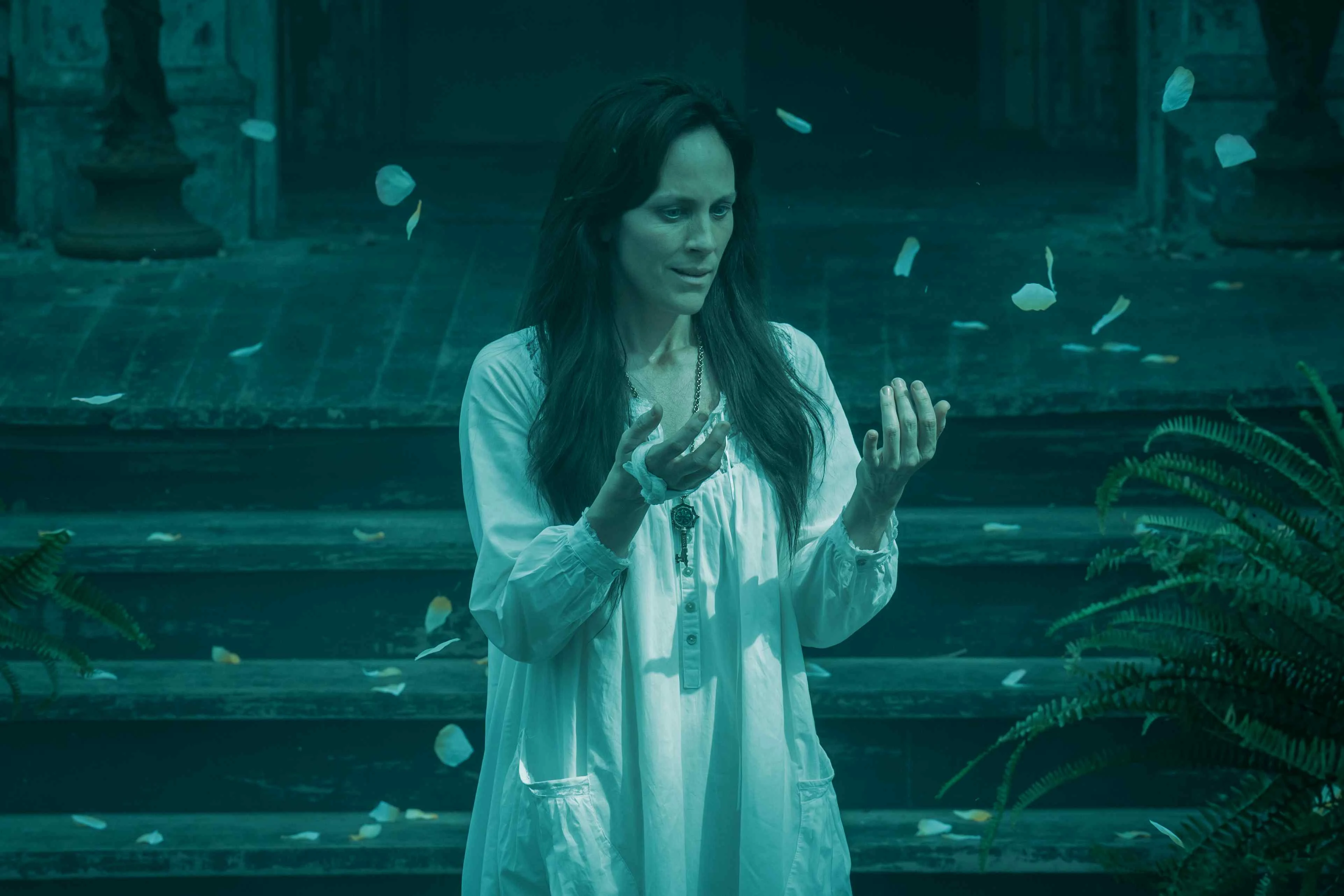 As Rowan searches for a way out of her psychological, she crosses paths with Deirdre, who is sitting in a chair and her watch reads 12:00, also known as the witching hour. She tells Rowan that Lasher is coming and that the witching hour is upon them for Lasher to be embodied. When Rowan asks where is he, Deirdre touches Rowan's stomach and says that Lasher is with her already and that she's the doorway for him, revealing that through sex, Lasher entered the body of her and Ciprien's child. Darkness then fills the surrounding room, leaving Rowan blind.[5]